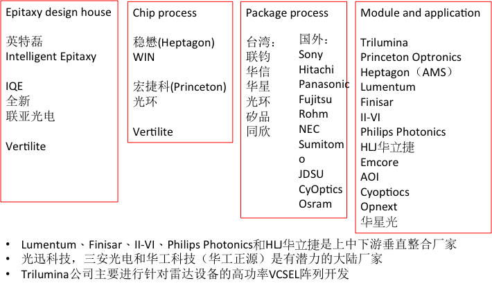 圖二 VCSEL的產(chǎn)業(yè)鏈分工示意圖